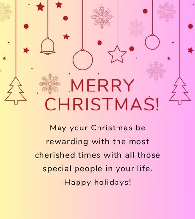 5. May your Christmas be rewarding with the most cherished times with all those special people in your life. Happy holidays!