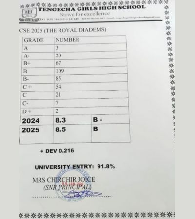 Tengecha Girls High School is a C2 or Extra County School in Bereti Sub County in Kericho County. In 2025 KCSE results the school had 3 Students with an A plain, 20 students with an A minus, 67 with B plus and 109 students with B plain. The minimum grade achieved was D plus, only 2 student had this mean grade. Majority of the students ranged between B plus and C plus. The school had 91.8 % students transition to university.
